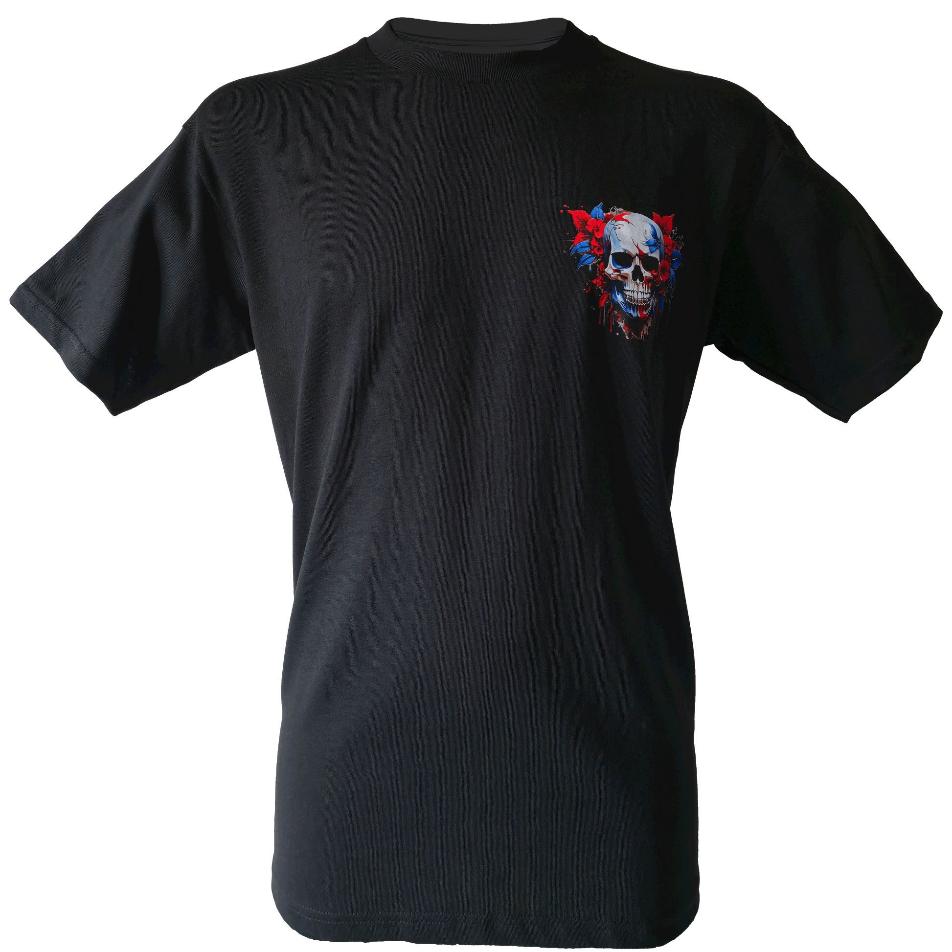 Drop Shoulder Half Sleeve - Black (Red And Blue Skull)